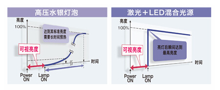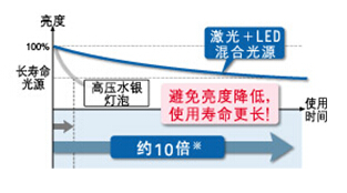 水银灯泡的寿命是传统投影机最大的劣势,高昂的后续支出费用使得许多对投影机感兴趣的消费者望而却步。但是此次CORE系列投影机使用全新的混合光源技术,使用寿命是灯泡机的10倍左右,并且电力消耗只有普通灯泡投影机的一半。在减少维护成本和使用成本的同时,亮度的衰减也较慢。