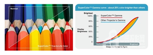 优派独家SuperColor™超炫彩技术,拥有独步全球的色轮及灯泡调整技术,并展现更宽广色域,不论是明暗场景,都能投影true-to-life的颜色,更胜一般DLP投影机,真实呈现所见景物的色彩。此外,PJD7828HDL还拥有5种色彩模式,方便用户依所投影的环境,快速选取合适观赏的色彩模式。