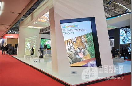 此次Digital Projection公司在ISE的展位上,新型固态光源无灯泡投影机进行了重点展示,竖屏模式朝上投影的投影机更加彰显激光投影机特有的灵活性,吸引众多观众目光。
