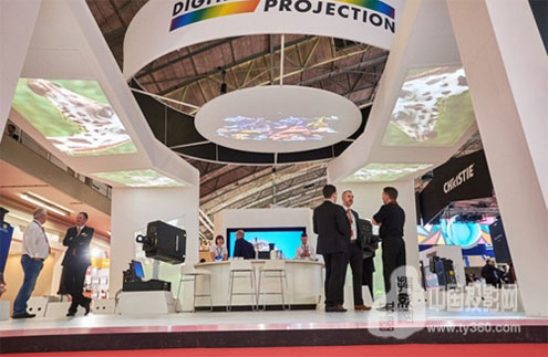 ISE展会Digital Projection展台上的固态光源和灯泡型投影机组合