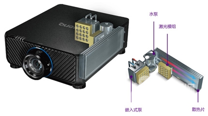 激光光源还带来了两个重要优势,第一是光机密闭性更好,机器更防尘。二是投影机可以360度全方位自由安装,这是灯泡光源产品很难做到的。值得一提的是明基LU9715应用了液冷散热系统,降低噪音,可稳定持续长时间运行。