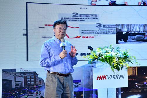 嘉兴海宁市公安局情报支队主任杜海杰先生、长春工业大学信息中心主任臧玉春先生、宿迁交警支队科技大队大队长刘佳先生现场分享与海康威视的合作