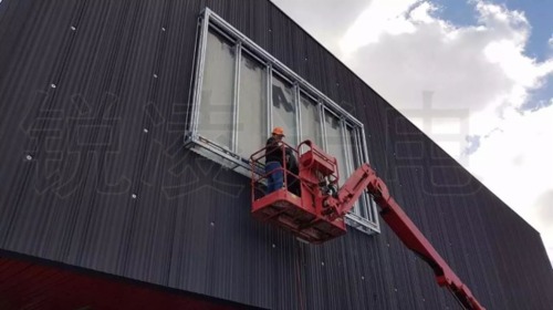 两块LED显示屏都属于锐凌户外前维护铝模组简易箱体拼接。