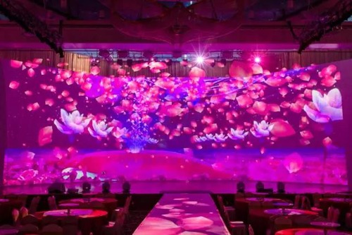 宴会厅作为举办现代婚礼和公司年会的重要场地之一,已成为各大酒店的新晋“宠儿”。嘉兴某酒店为了吸引更多客人,将其宴会厅打造成炫酷华丽的全息4D宴会厅。经过多重考量之后,最终通过爱普生CB-G7100工程投影机,结合全息技术、数字水幕、T台互动技术等打造出的前沿显示整体解决方案,为客人们带来集舞台表演性、互动参与性、创新内容性于一体的震撼裸眼3D效果。