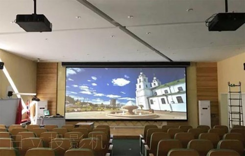 由于多功能厅环境光较强,需要应用亮度更高、效果调试更完备的显示系统方案,经过专业设计和多次论证,学校最终选择了两台日立TCP-D1070U进行拼接融合的方式,确保高亮度大画面,使老师与学生都能观看到清晰的画面内容。