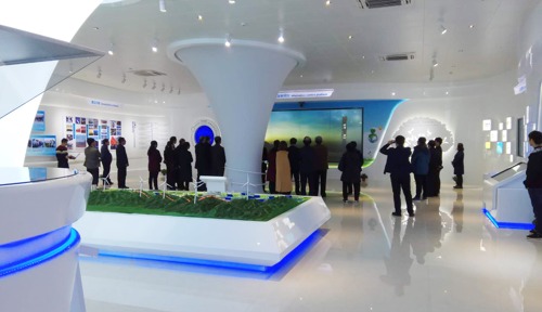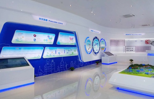 芮城县光伏领跑技术基地总投资88亿元,是国家能源局2016年批复的全国8大光伏基地之一。新能源展厅是集信息控制平台和展示展览的一体化建设,其中信息控制平台包括大型控制设备和数据显示大屏,运用云计算、大数据、空间地理信息、三维GIS等新一代信息技术,对各光伏发电项目进行信息化管理。同时,新能源展厅划分为前言、项目概况、领导关怀、建设历程、企业展台、光伏科普、风电科普、新能源文化、展望未来九个板块,采用液晶拼接显示系统进行光伏知识科普,寓教于乐的展示更为清晰的介绍了光伏领跑技术基地的基本情况和建设过程。