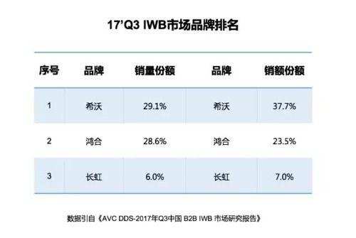 再创新高!2017年Q3希沃销量销额双第一,首夺IWB整体市场桂冠!