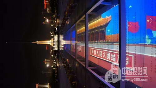 每当夜幕来临,隐藏式灯具及DET投影机相互辉映,播放微电影,让广大市民通过文字和影像等多种形式领悟中国人民解放军的发展壮大史。
