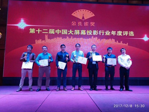 2017年视听行业高峰论坛同期还举行了第十二届中国大屏幕投影行业年度评选颁奖典礼,AVANZA帅映荣获“2017年度投影机品牌大奖”,这是继2015年荣获第十届中国大屏幕投影行业年度投影机品牌大奖,2016年荣获第十一届中国大屏幕投影行业年度投影机品牌大奖后,再获此殊荣。