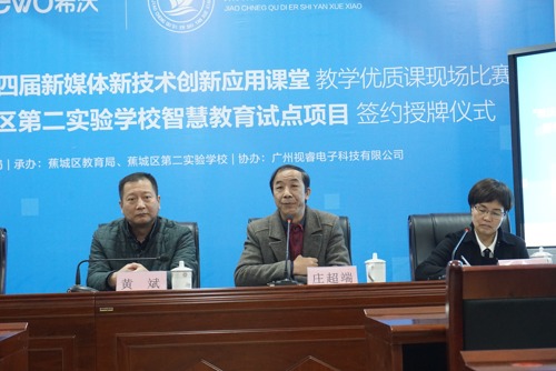 借此契机,蕉城区第二实验学校与视睿科技举行了“希沃助力蕉城区第二实验学校智慧教育试点项目签约授牌仪式”。宁德市教育局黄斌调研员、蕉城区教育系统党委庄超端副书记、宁德市电化教育站林向英站长、蕉城区第二实验学校黄云周校长、各参赛教师及希沃相关代表出席了签约授牌仪式,共同见证这个重要时刻。