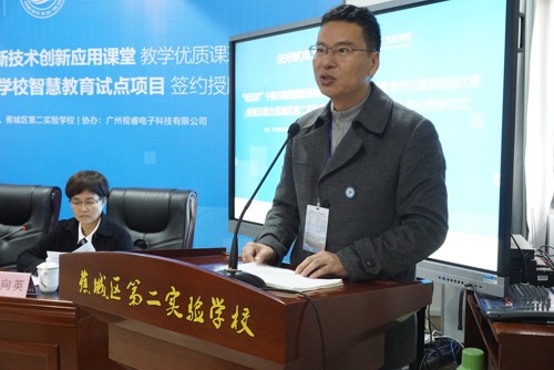 希沃福建省总经理吴剑勇说:“今天,试点项目授牌仪式的落成标志着希沃将就信息技术与教育教学的融合应用,与蕉城区第二实验学校展开更多领域的深度合作。希沃将联手学校加大对教师教学应用、校园智慧管理的投入,以希沃学院为平台,通过信息化课程开发、教研教学交流、智慧课堂打造等方式,共同促进教与学的协同发展,促进智慧教学、智慧管理平台在蕉城区第二实验学校的落地使用,开创学校和企业共同发展的美好局面,为宁德市乃至福建省智慧教育建设工程添砖加瓦。”