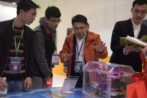 (八爪鱼销售总监易总向来宾介绍智能苗圃课程套件)