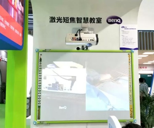 明基本次展出的激光超短焦交互式一体机解决方案A,以激光超短焦投影机LW83USTD、交互式一体化红外电子白板、无尘环保书写板三种设备为核心,可辅以软件系统、功放音箱等一体化设备,搭建高度集成化的智慧课堂。
