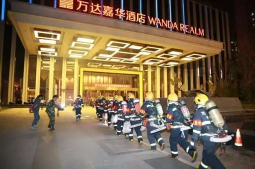 无独有偶,9月14日晚,西宁市政府联合青海省公安消防总队在西宁市海湖新区举行高层建筑灭火救援实战拉动演练。本次演练,以西宁市城西区万达嘉华酒店为背景,假定万达嘉华酒店35层由于房客卧床吸烟导致楼层着火并迅速蔓延。西宁、海东15个消防执勤中队、200余名消防官兵、32辆消防车和14个应急救援联动单位参加了演练。
