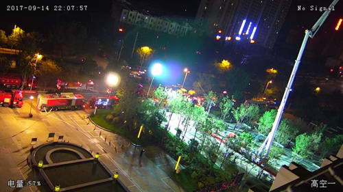 图9:消防官兵与4G高清布控球一起驻守在固定点位