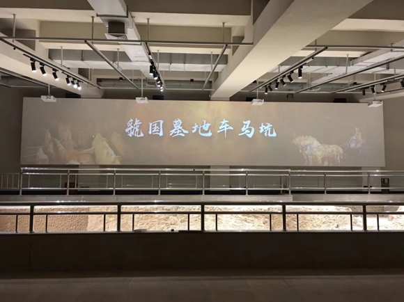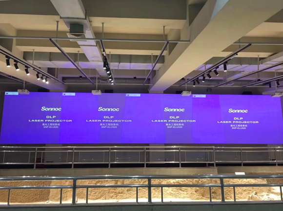 在虢国博物馆“虢国墓地车马坑”展项里,多台索诺克(Sonnoc )SNP-ELU520激光工程投影机通过拼接融合的方面,打造了块超大画面的投影墙,投影墙播放的高清动态画面配合静态的文物形成了“动静结合”的展示方式,让文物“活”了起来,即具备趣味性,又让观众更方便了解历史,深受观众欢迎。