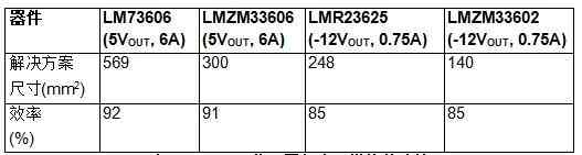 表1比较了TI功率模块(LMZM33606和LMZM33602)和集成稳压器(LM73606和LMR33620)。如您所见,在设计中实现电源模块时可节省相当大的空间。操作效率在没有任何可感知的变化时,空间得以节省。