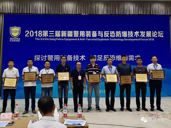 联建光电助力安防行业守护人民安全的决心得到见证,优异的安防产品品质得到认可。在本次展会中,有关单位特向联建光电颁发了“2018新疆警用反恐装备优秀企业”奖项,以表彰联建光电长期以来对安防领域做的突出贡献。