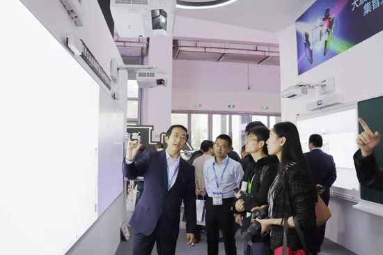 此次爱普生K12智慧校园系列教育解决方案,展出了可用于多媒体教学使用的高清双屏拼接互动教学解学方案、具有2048级还原书写压感的墙面/桌面集成投影解决方案,适用于低龄教学的超短焦悬停互动教学解决方案、同时满足书写投影需求的万向板教学解决方案。