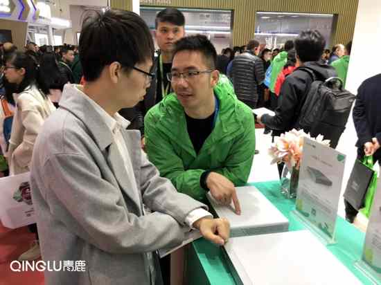 青鹿工作人员向观众介绍青鹿智慧课堂产品