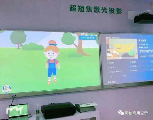 本次展会,海信一并重磅推出了教育专用的超短焦激光投影。采用行业顶尖高清显示技术,保证任何画面高保真输出。激光主机采用超静音低功耗设计,有效保证了教室的安静的教学环境。不仅如此,海信教育超短焦激光投影搭载丰富的微课学习资源,丰富学生的互动教学体验。