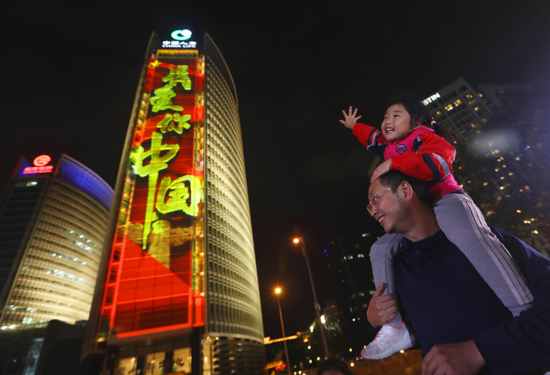 红色的五星红旗在夜空中舞动,“我爱你 中国”印在每个人的心中。流淌在内心深处的爱国情怀,在这场光影盛宴的见证下变得激荡而深刻。