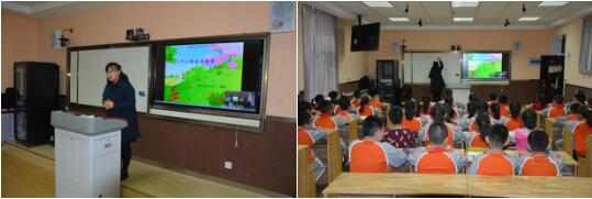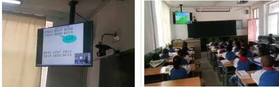 “山谷里,早先有过一个美丽的小村庄。山上的森林郁郁葱葱,村前河水清澈见底,天空湛蓝深远,空气清新甜润”,六小张淼老师的声音在两个教室同时响起,视听效果宛若置身同一教室,两个学校的学生学习积极性高涨,很快就顺利地结束了一堂生动的语文课。