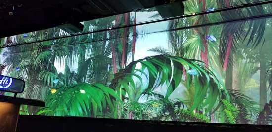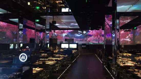 据了解,北京三晶航宇显示技术有限公司用加拿大GOO专业屏幕漆助力完成的海底捞北京智慧餐厅580屏幕多维环幕,打造全球首家海底捞“沉浸式”体验火锅智慧餐厅,全新的体验、全新的装修风格和就餐环境将让顾客耳目一新。现场震撼和叹为观止的投影效果,受到业主和消费者的一致好评!