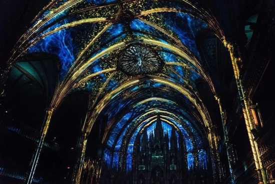 整个教堂投影使用了21台投影仪,140盏灯和20盏镜子,随附的原声带音乐由marc bell和gabriel thibaudeau组成,再加上30位音乐家、20位合唱团结合大教堂的管风琴演绎,使蒙特利尔圣母大教堂的投影绚丽多彩,让观赏者沉浸在一场盛大的视听盛筵之中!