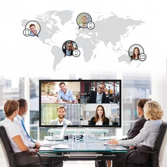 明基智能会议平板的远程视频功能,可以“面对面”多方远程沟通,即使相隔万里也能随时获知最新消息,原本需要花几天时间才能解决的事,一个小时就能搞定。