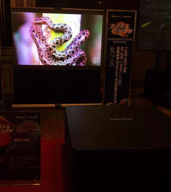 不论是4000流明还是最高的40000流明,不论是HD、WUXGA、WXGA,还是4K分辨率,科视的激光全系列投影机无一不包括在内,各种科视独家技术,科视 BoldColor技术、RealBlack™ 技术和Christie RealLaser照明技术,都在会场内同时呈现在观众面前。