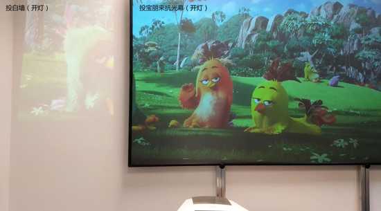 < 开灯投白墙与投宝丽来抗光幕对比 >