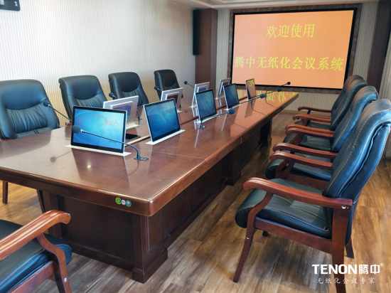 该项目主要安装了TENON(腾中)液晶升降一体机双屏、无纸化会议终端、数字会议控制主机、数字编解码器、数据交换中心等。通过这些设备,实现对无纸化智能会议系统的有序控制,方便快捷。