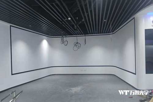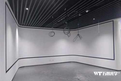 近日,江西宜春某企业展厅U型幕采用万图金属硬幕制作,总长为13米,宽度为2.5米,采用四台激光投影机做投影融合。该项目的幕面采用白色,增益达到了1.4倍,经过万图喷涂工人的调配工艺,可以有效的防止“太阳效应”的出现。由于是U型的结构,项目中采用复合树脂作为幕基,超强的韧性有利于U型幕圆角的安装,也方便售后问题的处理。