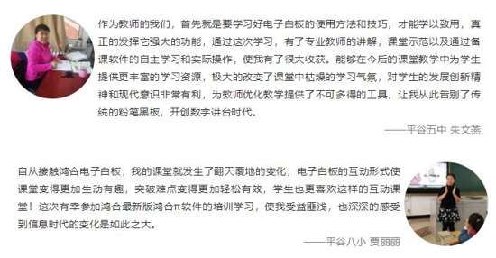 时代在发展,科技在进步。教育信息化的不断推进也对学校和教师提出了更高的要求,鸿合作为背后的支持者,除了为师生提供更好用的交互教学设备,还要为师生提供更好的培训服务,让我们携手共创美好教育未来。
