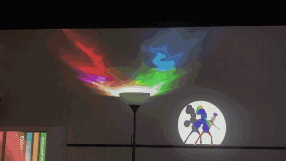 接下来是小型美术馆,几幅肖像油画挂在墙上,走到近前观看,其中两幅的画中人眉眼微动,发丝轻飘,栩栩如生!这是日立投影机创造的动态影像化“变幻灯”,它将用片源投影到绘画实物上,让观众看到实物质感却能“动”起来,是美术馆、公司展厅的创意选择。
