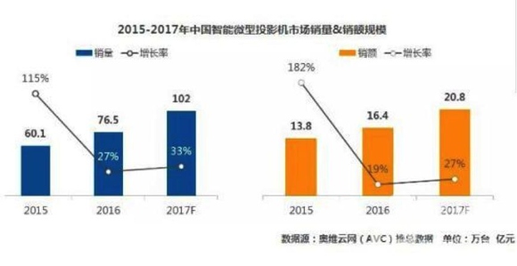 在这个在这个娱乐至上的时代,智能投影已经成为越来越多的家庭必不可少的一部分。据奥维云网统计:2017年中国智能微型投影市场迎来快速发展,销量规模达102万台,销额20.8亿元,量额同比分别增33%、27%,销量和销售额双双呈现高速增长态势。酷乐视R4/R4S自一季度推出以来,除了获得市场认可外,上市打出的“全高清普及风暴”也将1080P投影理念推向了市场受众。