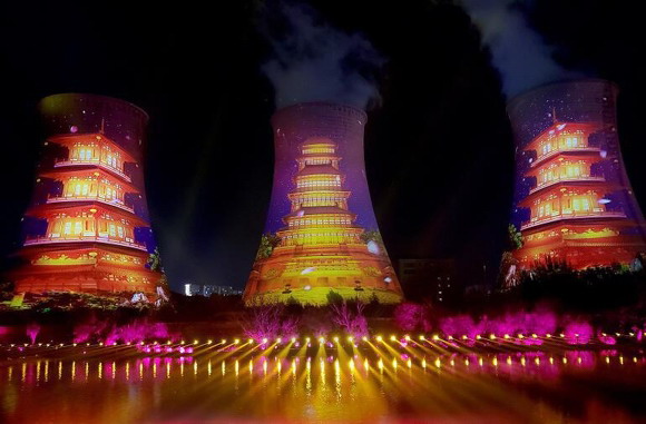 近年来投影技术的不断提高为文化旅游业的繁荣发展注入了新的活力。高端投影技术与景区固有特色的融合,使目前世界唯一的高塔投影秀成为张家口下花园蝶恋花文旅小镇的特色旅游景观。高塔投影秀运用12台NEC 4万流明4K双色激光旗舰级工程投影机,开创性地以近百米发电厂冷却水塔为背景,在超过10000平方米的高塔“屏幕”上,演绎了一场气势恢宏的传奇剧目,炫目的投影效果让世人叹为观止。这是国际显示巨擘NEC,携手工程机全国总代理鸿合科技,打造的又一场视觉饕餮盛宴。