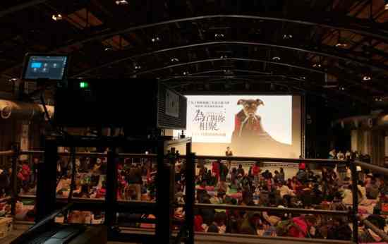 在进懋有限公司技术团队的专业指导下,这个曾是台湾最著名篮球队的训练用篮球场、具有历史意义的多功能展演厅被改造成一个温馨的电影院,配有一块10米宽的屏幕,铺上地垫和绒毛垫子,为观众和他们的狗狗们营造舒适的环境。