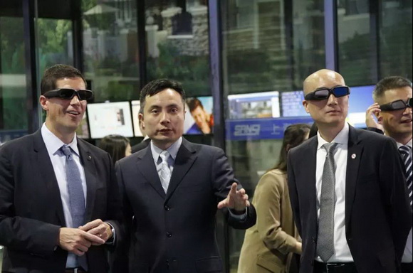 陈鸣副董事长向会晤嘉宾介绍三思智慧路灯