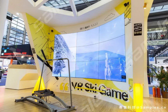 对于空间有限而又追求创意的场地,OLED柔性拼接屏仍然先拔头筹,成为创意届的新宠儿,轻松实现现有拼接技术难以实现的无论是垂直方向、横行乃至一些弧度的贴墙显示设计等一系列差异化应用。3行3列冰天雪地超大画面显示,极具吸引力,给人营造了一种非常直观、真实的立体视觉感官,配以VR眼镜、5G网络、滑雪机,堪比一场身临其境的大型滑雪现场,体验感98%。