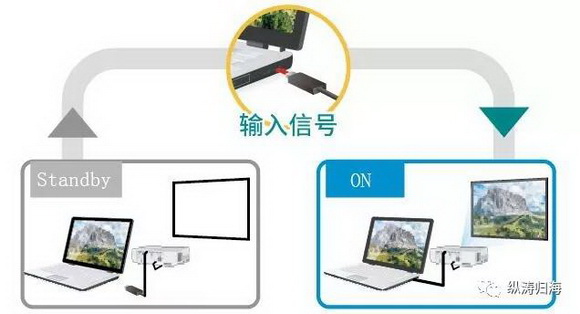当投影机处于待机模式并检测到外部设备的视频信号输入时,此功能启动投影机以在屏幕上自动显示图像。