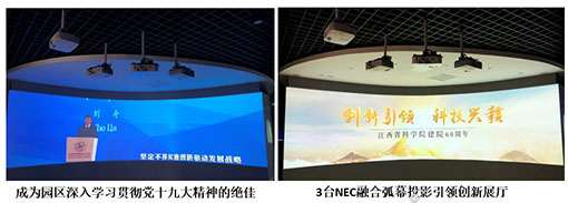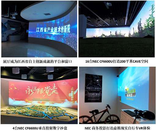江西省科学院创新展示中心作为江西省大众创新万众创新示范基地,是集中展示全省自主创新成就的平台和窗口。在创新展示中心项目中,全球显示行业领导品牌NEC采用30余台液晶商务投影机,通过运用弧形投影、互动投影等先进投影技术,打造了集CAVE沉浸式全景空间、VR虚拟现实体验馆于一体的高科技展示中心,全方位展示了国家级高新企业孵化器的发展轨迹和技术创新成果。