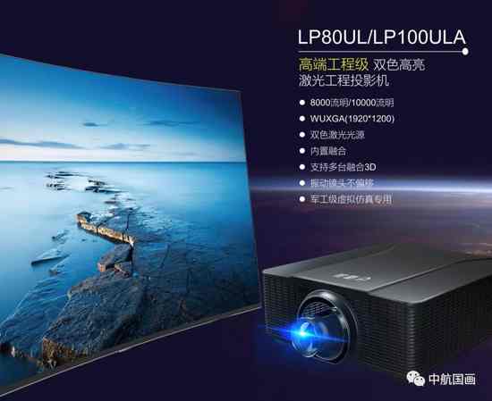 LP100ULA是中航国画目前投影家族中主力的高端机型,使用双色激光光源,红色更纯正,色彩更鲜艳。作为超过10000流明的高端工程机,LP100ULA的实力极为强悍,高亮、高分辨率和高可靠性,更支持3D极联,被誉为虚拟仿真级的高端工程投影。