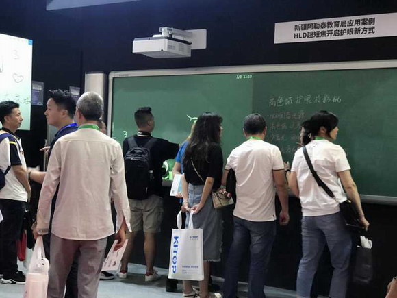 为了让与会者能够感受实地案例的全面应用,NEC还将新疆阿勒泰教育局HLD应用案例“搬”到了展会现场,吸引了不少客户驻足了解。HLD光源作为新型固态光源,在保留LED固有优势的前提下,把适用亮度从1000lm提高到了4000lm,实现了画面更大、色彩更好、寿命更长、更护眼于一身的特性。自NEC HLD超短焦投影机上市以来,成功打造了一个又一个经典案例,得到了教育用户的高度认可。