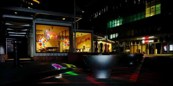 一般的餐厅都会配备大型落地橱窗,在不影响白天采光及原有空间设计的情况下,可以通过投影+投影膜的组合方式,将普通的落地窗在夜晚瞬间化身无边界的显示屏幕,通过在落地窗上投射生动的创意影像吸引行人的关注,为店面增加客流。爱普生LightScene投影灯把经过创意设计的“霓虹灯”风格的图形元素投射到玻璃上,将美食与美酒巧妙融合,呈现出艺术多元化的同时还能吸引更多人的关注,为店面带来更多客流。