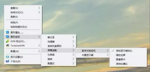 5、 画面比例不正常——先确认投影机自带的测试画面比例是否正常,确认电脑分辨率和投影机的分辨率是否对应,再确认投影机宽高比选项是否为“保持信号源比例”,确认电脑显卡相关选项是否为“保持显示缩放比”(如下图)