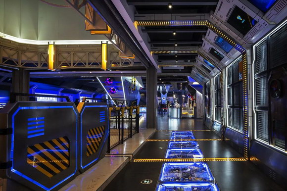 在这里,工作人员身穿航天服,检票处被称为登舱口,影厅门仿照太空舱门,全部模拟现实场景,为观众带来一种真实的空间站体验。