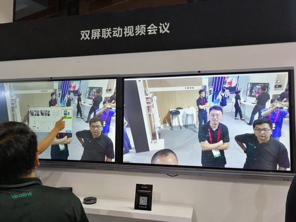 在会议现场,MAXHUB双屏互动视频会议方案也吸引了众多关注的目光。该方案通过双屏组合,开启MAXHUB云会议后,一屏能够实时同步共享多端的资料,实现数据流的双向打通,同时支持异地书写互动,双方可以随时在屏幕上进行批注修改,协作无障碍;一屏同步进行高清视频会议,不仅能够根据环境和网络状况实现音视频动态智能调整,且搭配MAXHUB新品,更能做到360度全方位拾音,减少噪音还原清晰人声,远在千里之外也可以轻松实现“面对面”般的沟通协作。