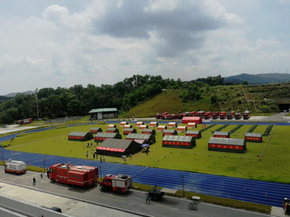 演练模拟广州帽峰山发生重大地质性灾害,同时深圳平安大厦、东莞海域、江门彩虹岭隧道也发生重大灾害,接到灾情后,广东省应急管理厅和消防救援总队迅速组织搭建国家级现场指挥部。